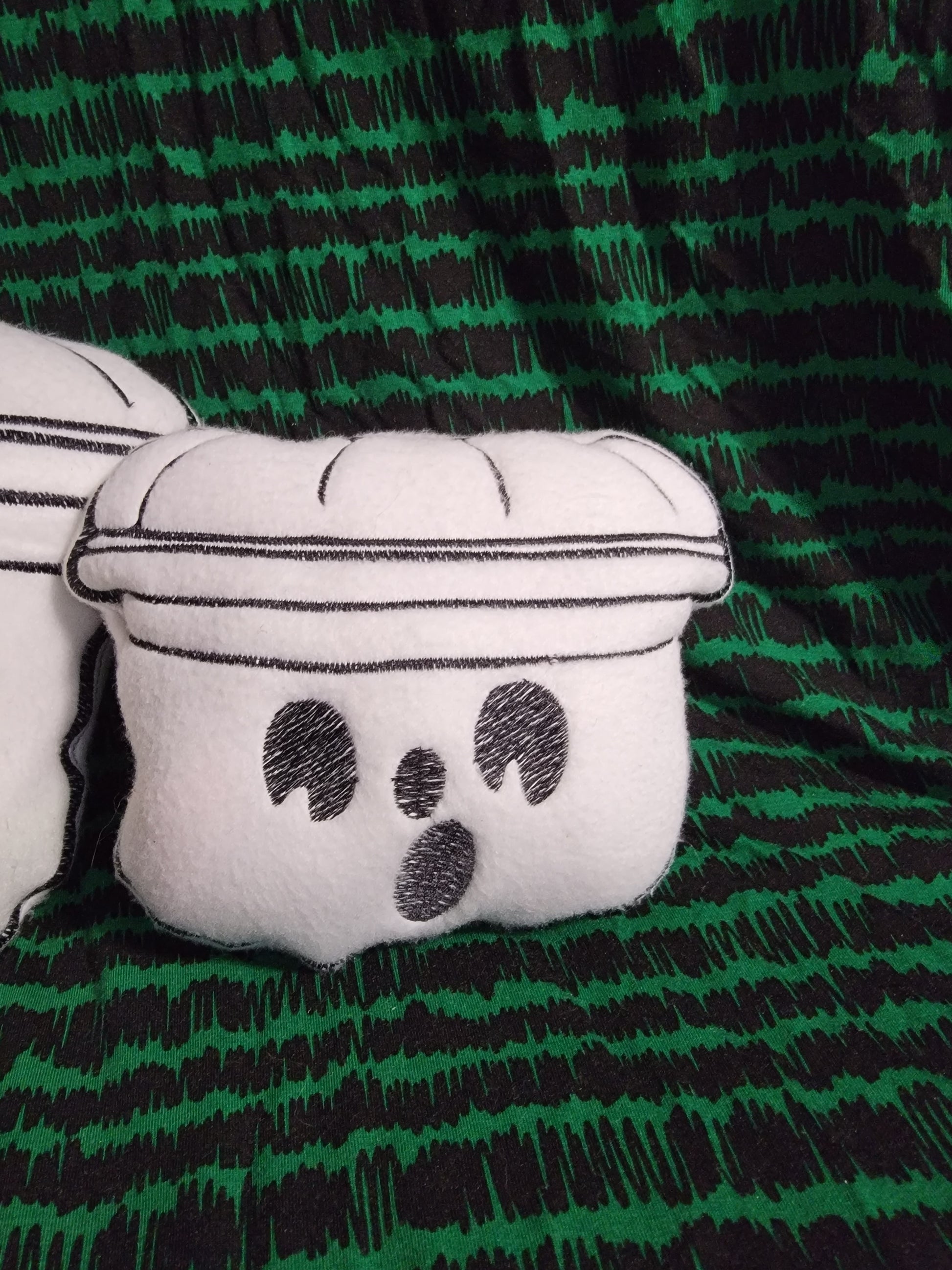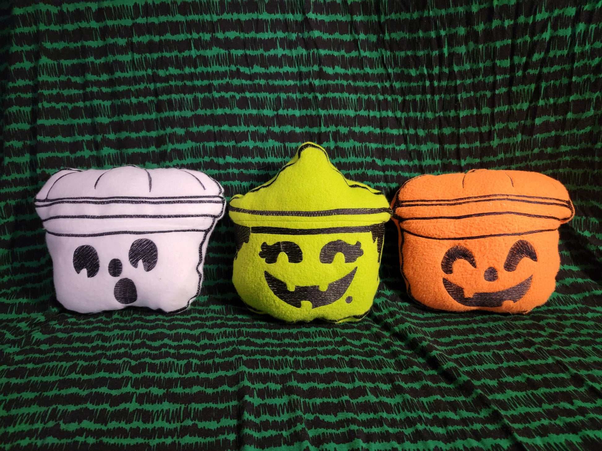 Boo Bucket inspired stuffies are made embroidered cotton fleece material, and stuffed with poly-fill! Measures approximently inches 5 inches tall x 7 inches wide.