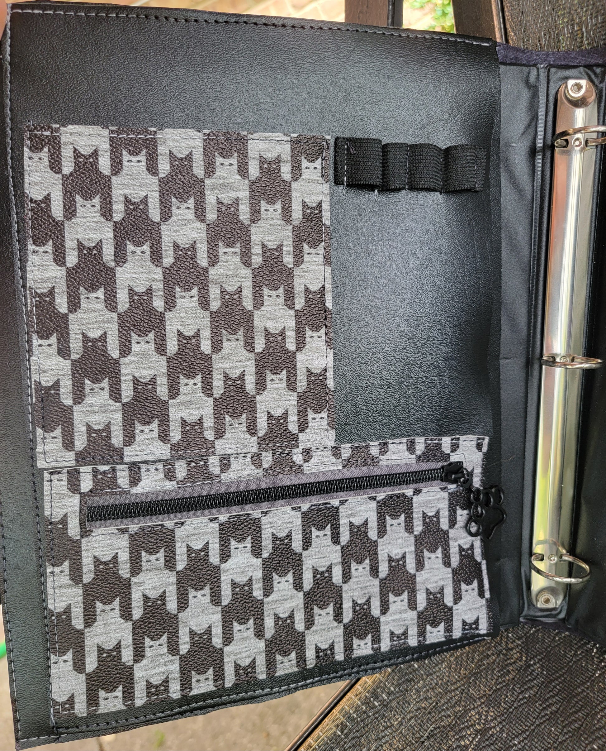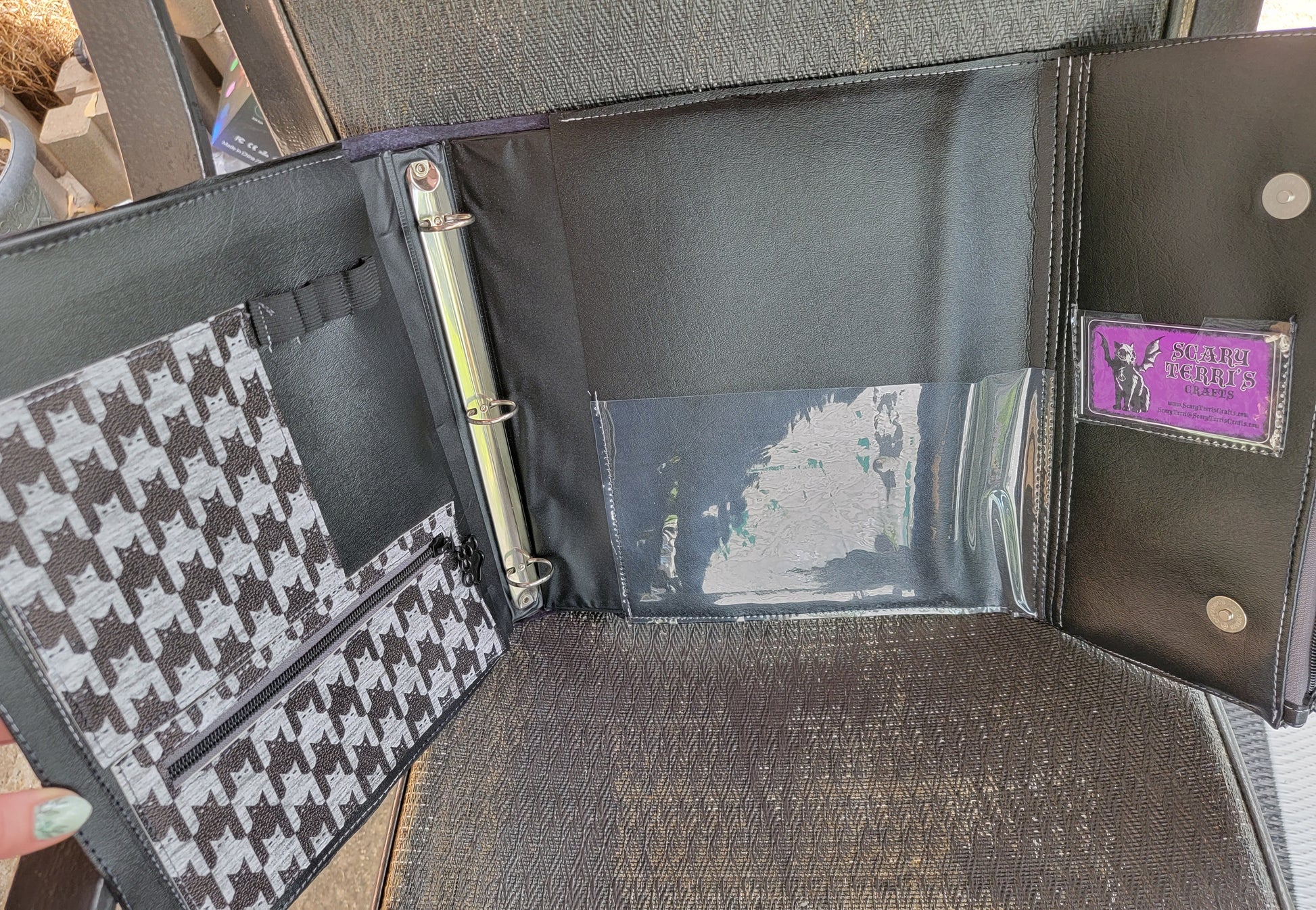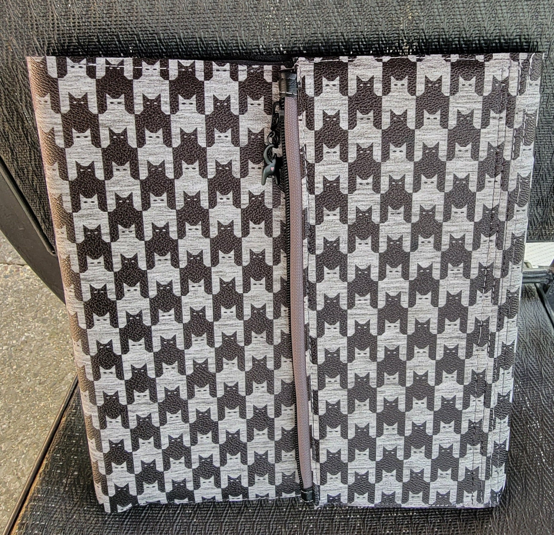 This Meowstooth Binder Cover is like a "trapper keeper" but WAY coolers! It features a fully lined zippered flap pocket, magnetic snap closure, interior zipper pocket, interior slip pocket, pen loops, an accordion folder pocket, a business card pocket, and a slip pocket that will hold a full size legal pad. This binder cover will keep everything you need organized and easy to find! The cover is sized to hold a standard 1" 3 ring Binder (which measures 10 3/8” W x 11 5/8” H x 1 1/2” D), a 1" binder is included with the cover, but no notepads, pens, folders, etc are included. .Handmade, machine sewn. Please feel free to message me if you have any questions! *This item is already finished, customization is not available*