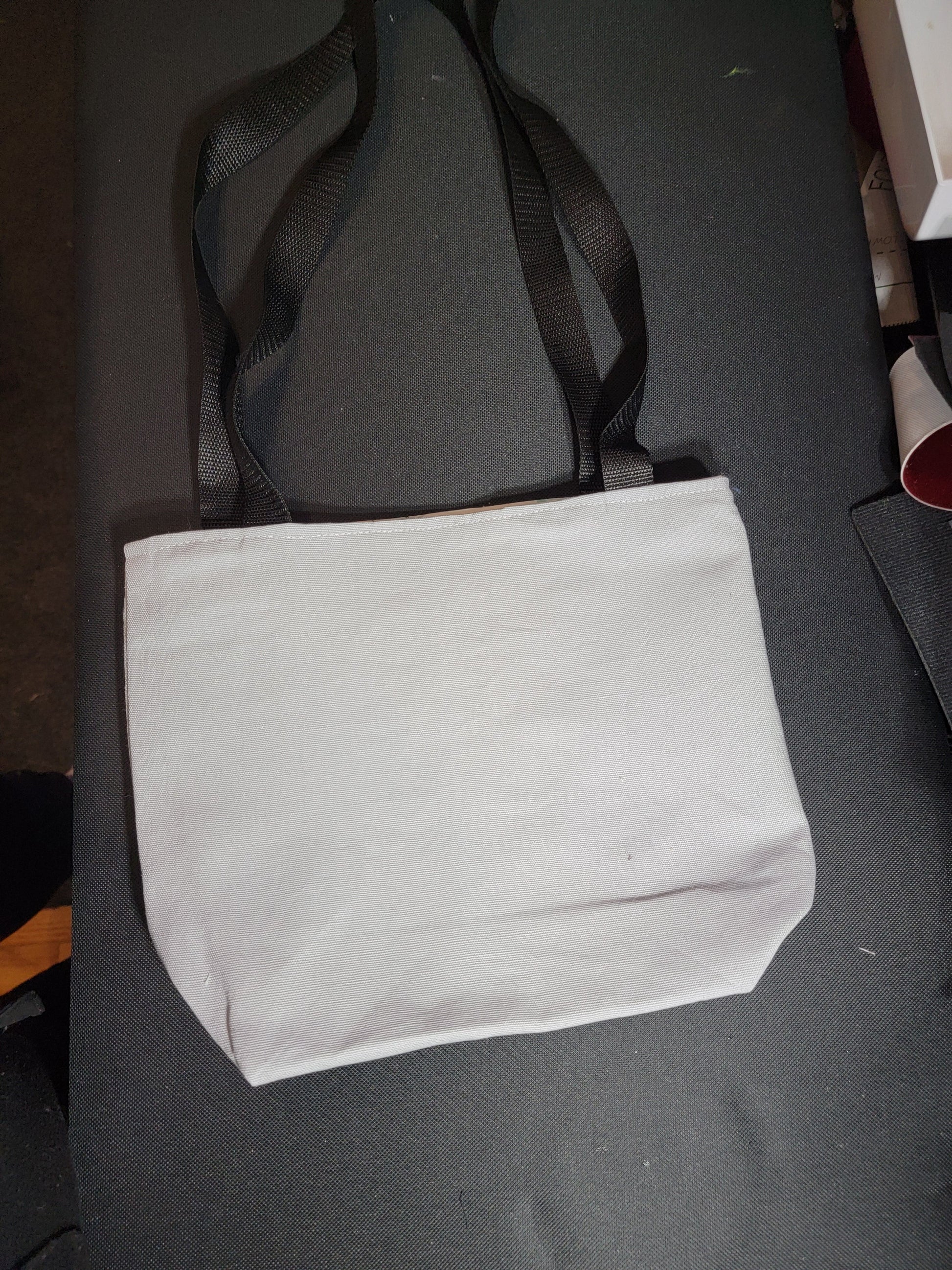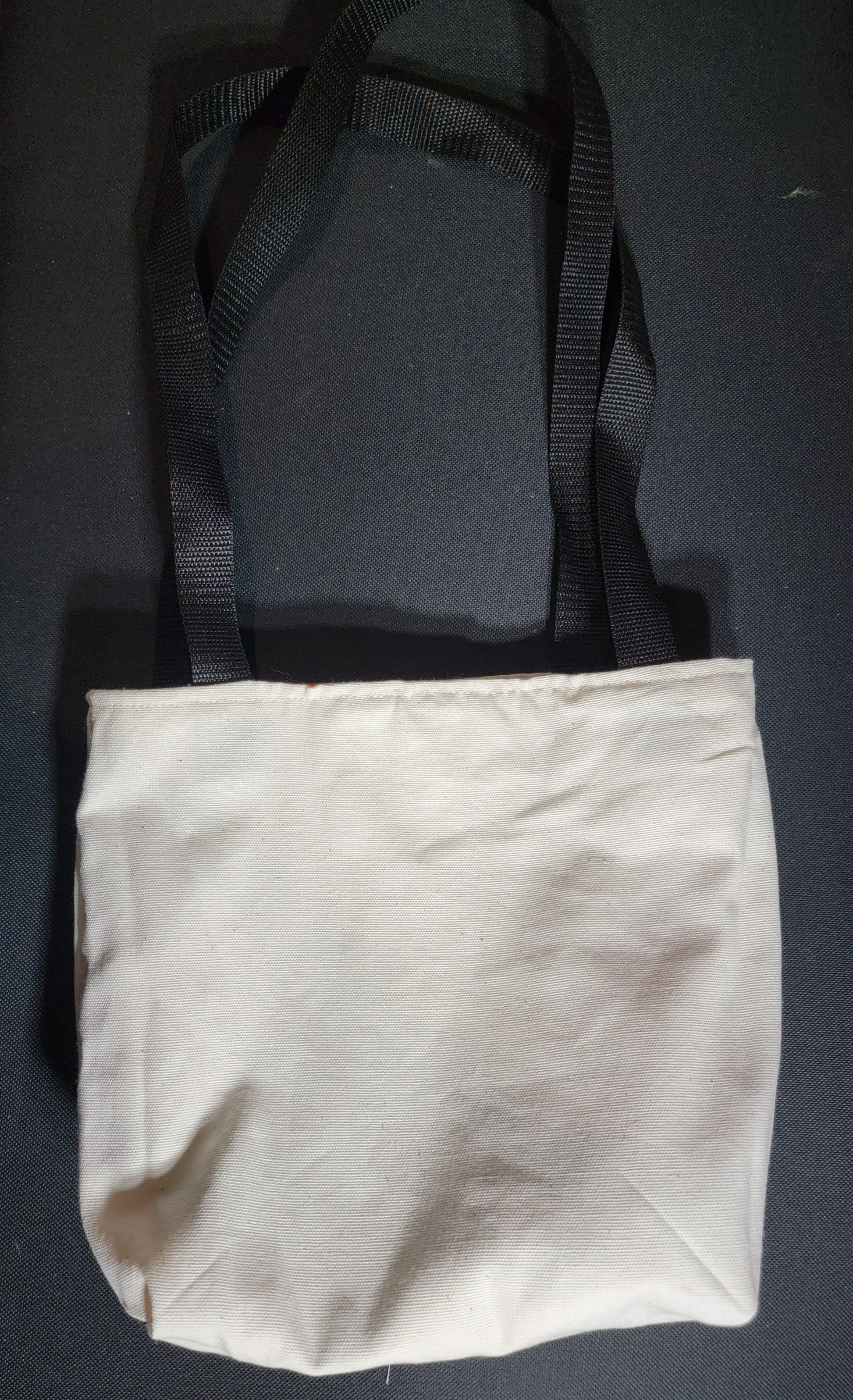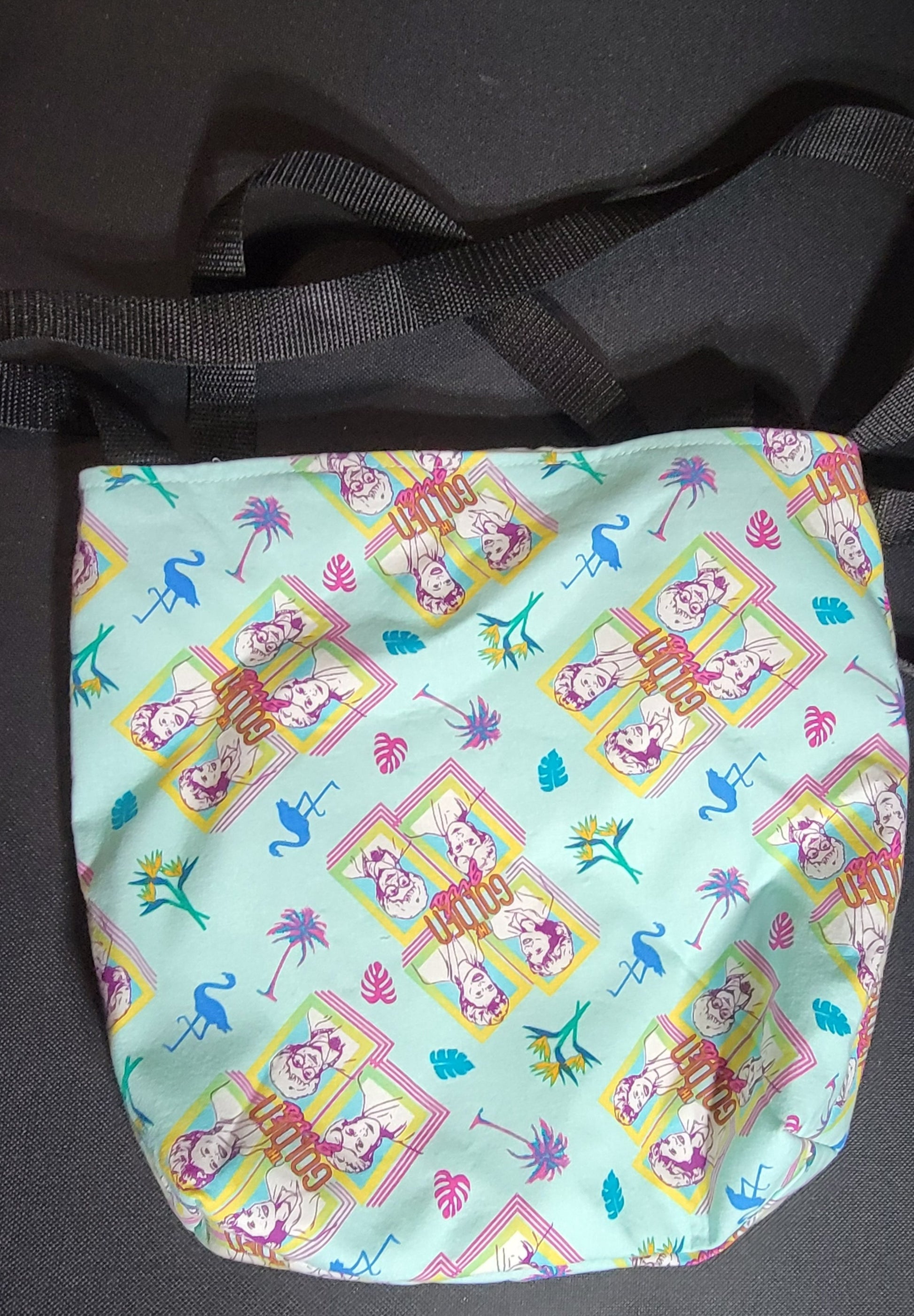 Golden Girls Reversible tote bag, One side printed cotton woven fabric, one side cotton canvas in gray or natural. Black poly straps, 25" long enough to comfortably carry the bag on your shoulder. 10"x8"x4" in size. Good size for carrying your wallet, keys, phone and a few things or as a lunch bag! Machine washable. Fabric placement may vary slightly from picture.
